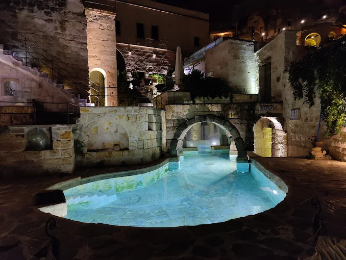 Tarih boyunca birçok farklı medeniyete tanıklık etmiş ve bunların çoğu tarafından yönetilmiş olan Kapadokya’nın kalbi Göreme’nin merkezinde bulunan Anatolian Houses; Kapadokya'nın tarihsel dokusunun bir parçası olan mağara oluşumları, yöresel yaşamın bağlayıcılık hissi ve peri masalını andıran dokusuyla misafirlerine tarih ile birleşmiş lüks bir otel hizmeti sunmaktadır. Otelde hendek tarzı açık havuz ve antik Roma havuzlarını andıran kapalı havuz bulunmaktadır. Otel bahçemizde birinden beyaz diğerinden kırmızı şarap akan tadım amaçlı ücretsiz çeşmeler vardır.