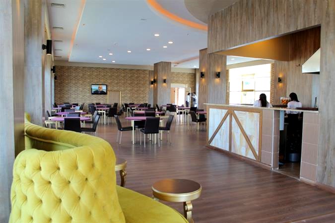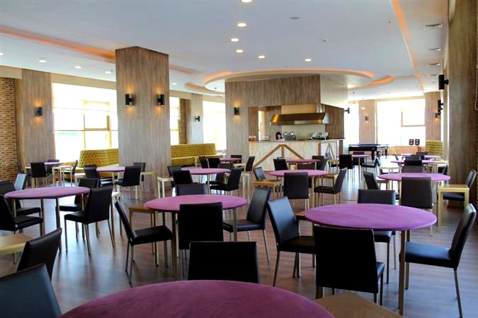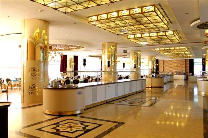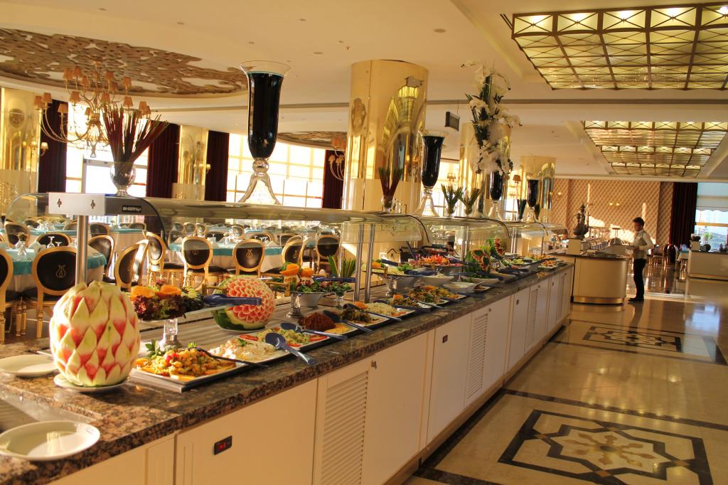 Otelimiz, yarım pansiyon konseptinde hizmet vermekte olup; sabah ve akşam yemekleri açık büfe şeklinde sunulmaktadır. Ayrıca cumartesi günü hariç her gün çay saati bulunmakta olup; 15:00-16:00 saatleri arasında servis edilmektedir. Tesisimizde 1 adet açık restoran, 2 adet kapalı restoran, 1 adet A'La Carte restoran bulunmaktadır. Kahvaltı 07:30-10:00, akşam yemeği 18:30-20:30 saatleri arasında açık büfe şeklinde sunulmaktadır. Dileyen misafirlerimiz A'La Carte restoranda ekstra ücretli olarak seçkin menülerden faydalanabilirler. Kahvaltı ve akşam yemekleri dışında alınan içecek ve yiyecekler ekstra ücretlidir. Lobby Bar, Snack Bar ve Vitamin Barda fresh meyve sularını ve diğer içeceklerin hizmetini alabilirsiniz.