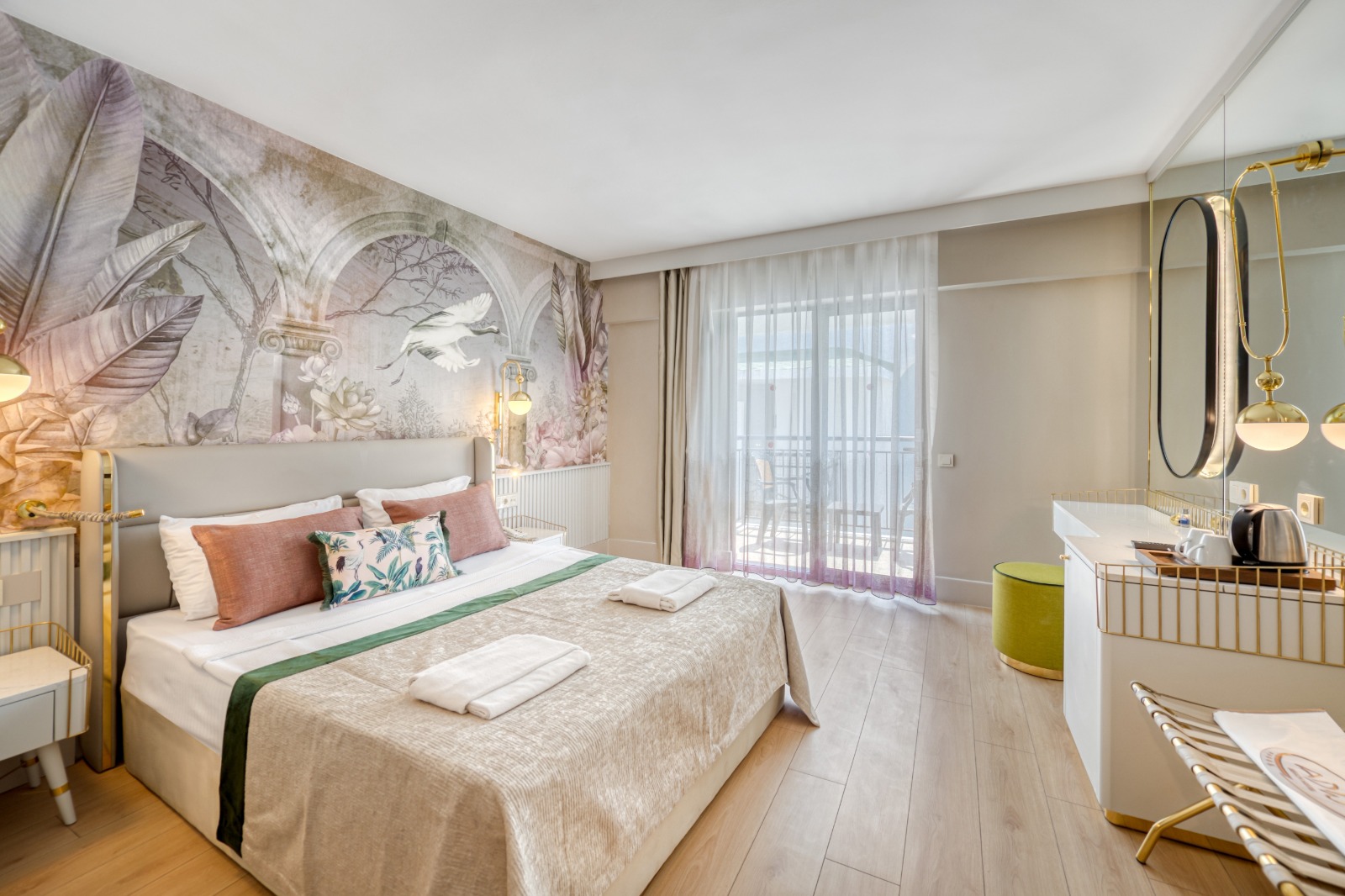 Benzersiz bir tatil deneyimi yaşamanız için tasarladığımız Flora Odalarımızda 1 yatak odası, 1 banyo ve keyifli sohbetlere eşlik eden balkon bulunuyor.