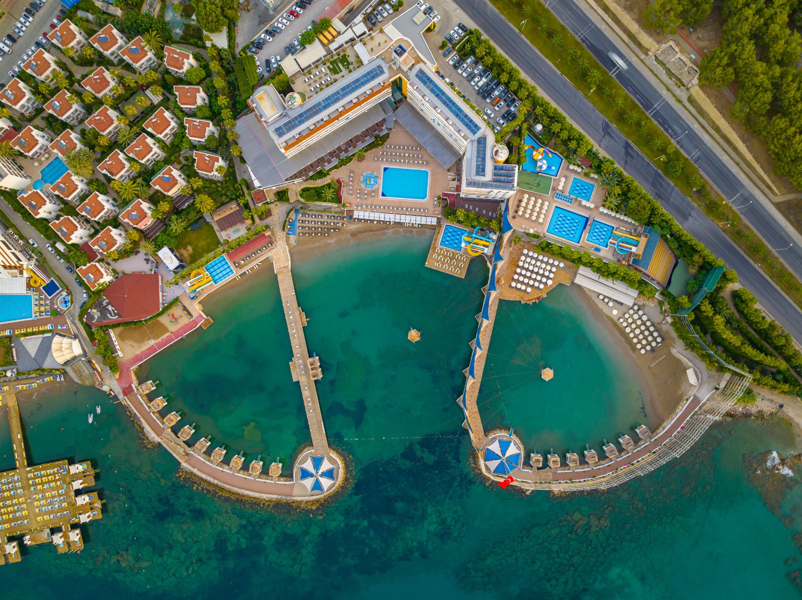Tesisin kendine özel kum plajı bulunmaktadır. Otelin kendine ait iskelesi vardır. 6 adet açık,2 adet kapalı yüzme havuzu ile keyifli bir tatil yaşayabilirsiniz. Tesiste bulunan banana, jetski, kano, sörf, yelkenli ile su sporları yaparak keyifli dakikalar geçirebilirsiniz.