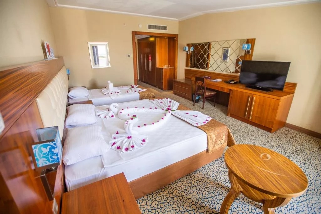 200m 2 genişliğinde olan odamız direk deniz ve havuz manzaralıdır. Tek kapı girişli olan odamız; salon kısmı kalabalık ailelerimizin oda içerisinde de güzel zamanlar geçirebilmesi adına oturma grupludur.