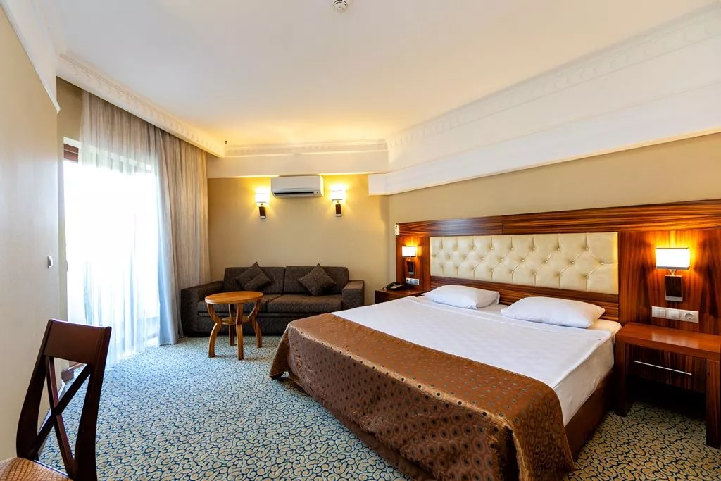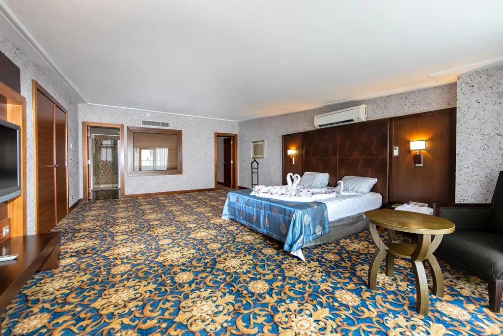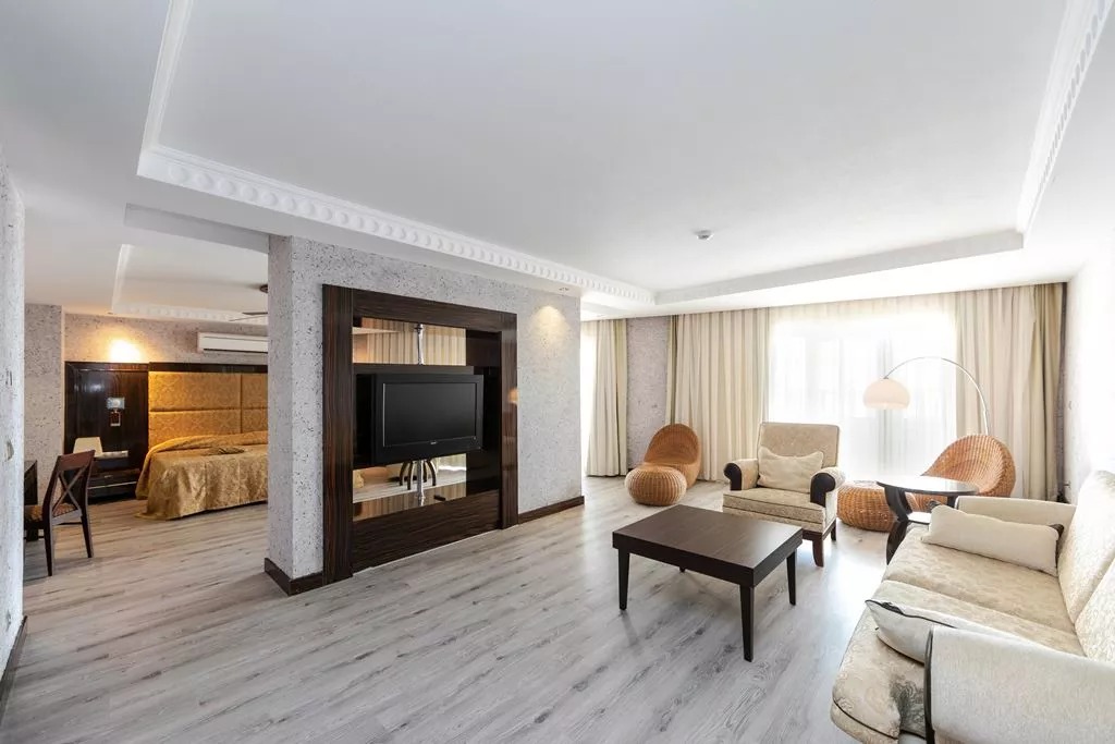 Senior Suit odalarımız 65m 2 genişliğinde, direk deniz ve havuz manzaralıdır. Otelimiz ön kısmında yer alan bu odamız 2 kişilik konaklamalar için uygun olup, genellikle Balayı Odası olarak tercih edilmektedir.