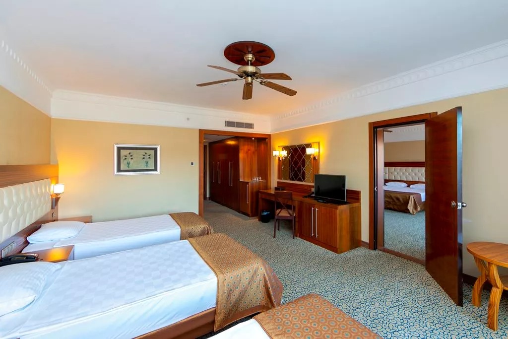 200m 2 genişliğinde olan odamız direk deniz ve havuz manzaralıdır. Tek kapı girişli oda içerisinde 2 adet çocuk odası + ortak kullanım salon ve ebeveyn odası yer almaktadır.