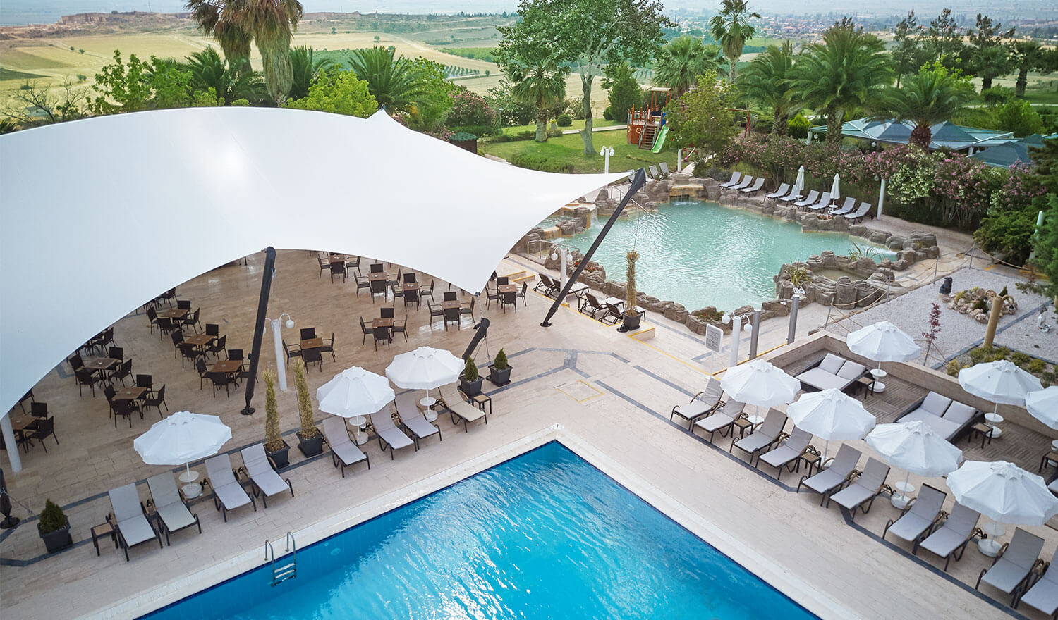 Richmond Pamukkale Thermal, travertenleriyle ünlü Pamukkalede misafirlerine huzur verici bir konaklama fırsatı sunuyor. Tesis, termal suların kullanıldığı çeşitli su terapileri ile misafirlere yenilenme imkanı veriyor. Tesisin ferah ve konforlu odalarında; klima, kablosuz internet, televizyon, uydu yayını ve minibar bulunuyor. 24 saat açık resepsiyon, bagaj muhafazası, çamaşırhane ve ütü hizmeti, tesisin diğer olanakları arasında yer alıyor. Spa merkezindeki sauna, hamam ve fitness center, fiziksel ve zihinsel olarak rahatlamaya yardımcı oluyor. Sabah kahvaltısı ve akşam yemeği, tesis restoranında açık büfe olarak servis ediliyor. Usta şefler tarafından Türk mutfağının enfes tatları özenle hazırlanıyor. Pamukkalenin ilgi çeken noktası travertenlere araç ile 5 dakikada ulaşılıyor. Richmond Termal Hotel, Denizli şehir merkezine 22 km uzaklıkta konumlanıyor. Tesiste çocuklar için oyun alanı bulunuyor.