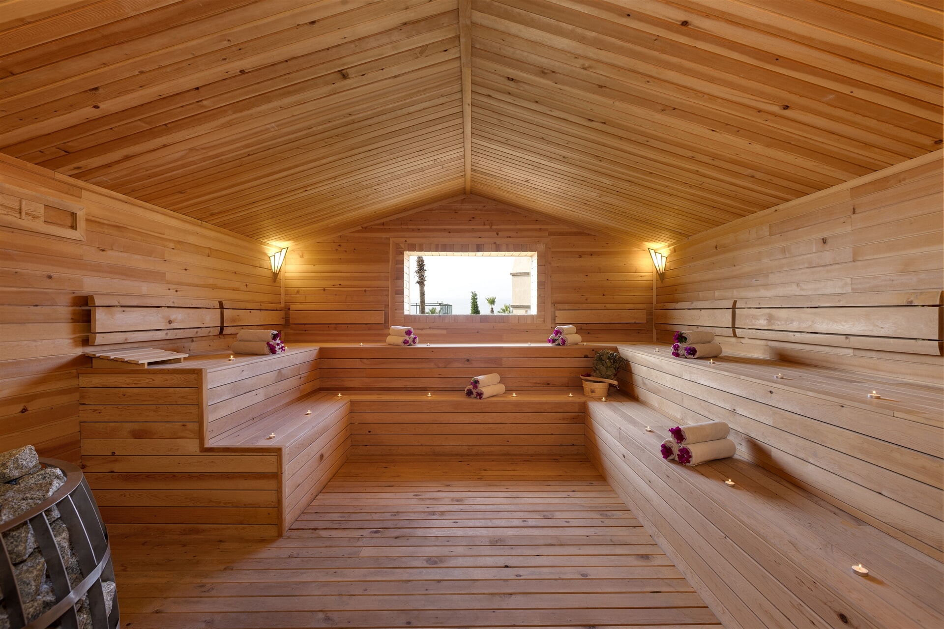 1 tenis kortu (sert zemin, gündüz kullanımı), basketbol, mini futbol, kapalı ve açık termal havuz kullanımı, hamam, standart sauna kullanımı, buhar odası kullanımı, fitness center, masa tenisi, dart ve otopark.