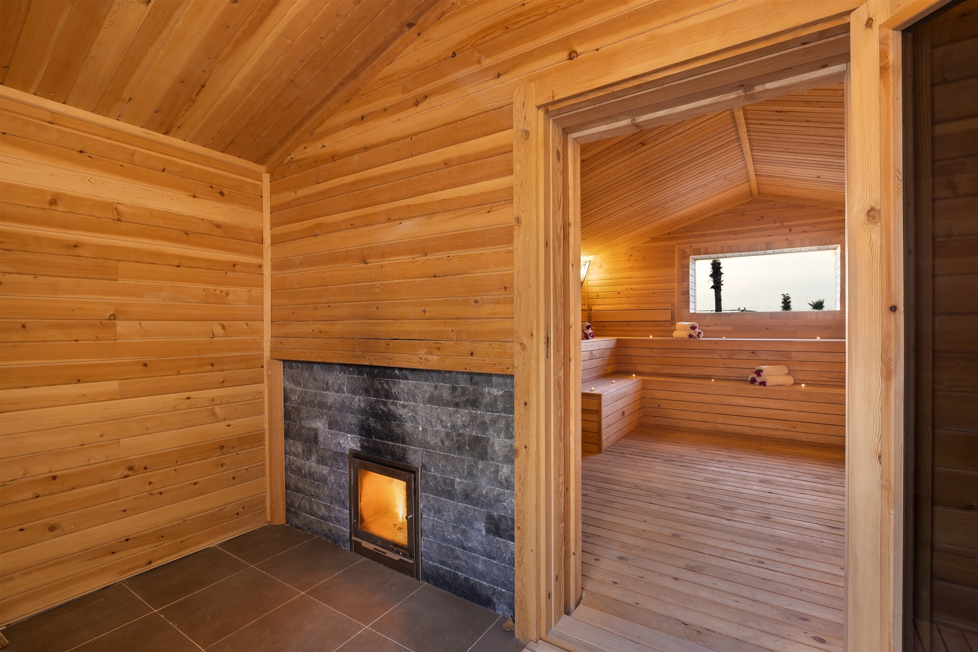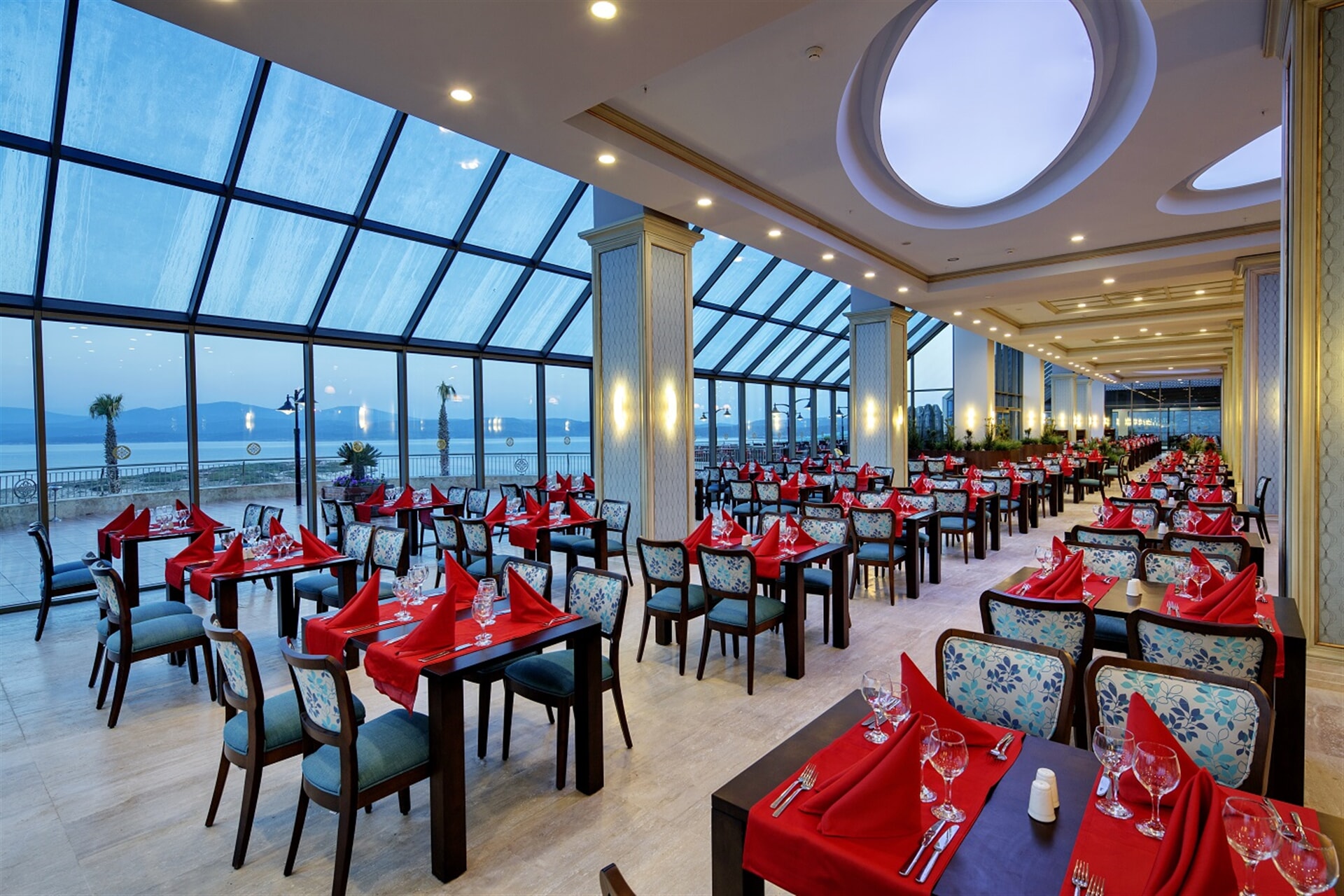 Her iki Kral Dairesinde, uydu yayınlı IP LCD TV ve konforlu oturma grubunun yer aldığı bir salon, direk hatlı telefon, minibar, sıcak set-up, split dijital klima (sıcak-soğuk), parke zemin, odada banyo, saç kurutma makinesi, jakuzi, elektronik kasa, bornoz ve terlik gibi olanaklar mevcuttur. Ayrıca, tüm Kral dairelerinde eşsiz deniz manzarası bulunmaktadır.